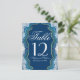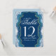 Dieses elegante und hübsche, blaue und aquamarine Agate Geode Rock-Muster mit Imitaten Gold Trim, Hochzeitstisch Karte. Sehr klassisches und raffiniertes Design für den klassischen Hochzeitsempfang. Personalisieren Sie mit Tischnummern oder fügen Sie Ihre eigene persönliche Nachricht hinzu, indem Sie sie anpassen. Das gesamte Foto-Druckdesign.