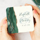Dieser elegante, moderne Hochzeitsfest-Untersetzer besticht durch ein smaragdgrünes Aquarell-Dekor mit vergoldetem Imitat-Glitzer. Einfach den grünen Text auf Elfenbeinhintergrund anpassen, mit den Namen der Braut und des Bräutigams in handschriftlicher Kalligraphie über einen großen Ampersand.