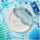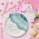 Not all wedding designs are created equal. The asymmetrical layouts for the pieces in this striking wedding set prove that's not a bad thing! Wavy bands of color in contrasting shades of teal blue and blush pink with a center of glittering crystal form a geode/agate accent on most pieces in the set. The coordinating wedding paper plate shown here features a large geode/agate angled to one side and your text on the other. Easily add your names, wedding date and personal 'thank you' message using the provided template. Search ID647 to see all the coordinating pieces in this set.