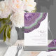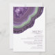 Nicht alle Hochzeitsdesigns sind gleich. Die asymmetrische Gestaltung der Stücke in diesem auffallenden Hochzeitsfest-Set beweist, dass das nicht schlecht ist! Weiche Farbbänder in kontrastfarbenen violetten lila und grünen Farbtönen mit einem Zentrum glitzernden Kristalls bilden einen geode/agate Akzent auf den meisten Teilen des Set. Die Hochzeitskarte 'Menü', die hier gezeigt wird, enthält die oben und eine Vorlage, um Ihre passenden Hochzeitsmenü-Auswahl hinzuzufügen. Auf der Rückseite können Sie auch die Namen der Braut und des Bräutigams und das Hochzeitstag hinzufügen. Suchen Sie ID647 um alle Koordinaten in diesem Set zu sehen.