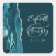 Agate Geode Script Aquamarin Blue Silver Wedding Quadratischer Aufkleber