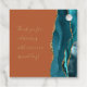 Dieses elegante, moderne Gastgeschenk Hochzeit-Tag zeichnet sich durch ein aquamarines Aquarelldesign aus, das mit Imitaten vergoldeten Glitzer besticht. Der goldfarbene Text auf einem verbrannten orangen Hintergrund lässt sich leicht anpassen, wobei die Namen der Braut und des Bräutigams in handschriftlicher Kalligraphie über einen großen Ampersand verteilt sind. Fügen Sie auf der Rückseite eine persönliche Nachricht in goldfarbenem Schriftzeichen hinzu.