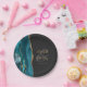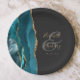 Diese eleganten, modernen Hochzeitsfeier-Teller zeichnen sich durch ein aquamarines Aquarelldesign aus, das mit vergoldetem Glitzer aus Imitaten besticht. Einfache Anpassung des goldfarbenen Textes auf einem schwarzen Hintergrund mit den Namen der Braut und des Bräutigams in handgeschriebener Kalligrafie über einen großen grauen Ampersand.