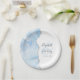 Diese eleganten, modernen Hochzeitsfeier-Teller sind mit einem Baby-blauen Aquarell-Design bestickt mit Imitaten silbernen Glitzer. Einfache Anpassung des kohlegrauen Textes auf weißem Hintergrund, mit den Namen der Paare in handgeschriebener Kalligrafie über einen großen, hellblauen Ampersand.