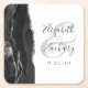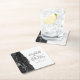Dieses elegante moderne Hochzeitsgeschenk-Untersetzer besticht durch eine schwarze Aquarellfarbe, die durch ein geodoriertes Design mit Imitaten aus silberem Glitzer besticht. Einfache Anpassung des kohlegrauen Textes auf weißem Hintergrund, mit den Namen der Braut und des Bräutigams in handschriftlicher Kalligraphie über einen großen, hellgrauen Ampersand.