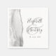 Diese eleganten, modernen Hochzeitsnapkins sind mit einem grau-weißen Aquarell-Geode-Design bestickt mit Imitaten silbernen Glitzer. Einfache Anpassung des kohlegrauen Textes auf weißem Hintergrund, mit den Namen der Braut und des Bräutigams in handschriftlicher Kalligraphie über einen großen, hellgrauen Ampersand.