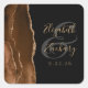 Agate Geode Script Mocha Brown Gold Black Wedding Quadratischer Aufkleber