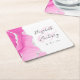Dieser elegante, moderne Untersetzer besticht durch ein rosa Aquarellfarben-Aroma-Geoddesign, das mit Imitaten aus Silberfolie bestickt ist. Einfache Anpassung des kohlegrauen Textes auf weißem Hintergrund, mit den Namen der Paare in handgeschriebener Kalligrafie über einen großen rosa Ampersand.