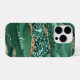 Agate Green Gold Glitzer Ihr Name Marmor iPhone 14 Pro Hülle