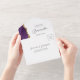 Die links Kulisse dieser eleganten, modernen und einladenden Hochzeitseinladung und der UAWG besticht durch eine lila Aquarellgrenze, die mit Imitaten mit Goldmedaille besticht. Der benutzerdefinierbare Text vereint stilvolles, grau-kochfreies Kalligraphieskript und serifenlose Schriftart auf weißem Hintergrund. Die Rücksendeadresse erscheint auf der Außentafel und auf der Rückseite der abnehmbaren RSVP-Karte in goldfarbenem Text auf festweißem Grund.