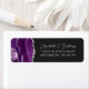 Die links Kulisse dieses eleganten, modernen Hochzeitseinladungs-Rücksendelabel besticht durch eine lila Aquarellgrenze mit Imitaten, die mit silberfarbenem Glitzer bestickt sind. Der anpassbare Text kombiniert silbergraue Handschrift und serifenlose Schriftart auf dunkelschwarzem Hintergrund.