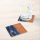 Dieses elegante, moderne Save the Date Untersetzer besticht durch ein marineblau-blaues Aquarelldesign, das mit Imitaten bestickt ist, die silbernen Glitzer aufweisen. Passen Sie den hellsilbergrauen Text auf einem verbrannten orangen Hintergrund einfach an.