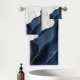 Agate Navy Blue Silver Glitzer Weißer Marmor Badhandtuch Set