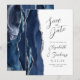 Agate Navy Blue Silver Modern Script Wedding Save The Date