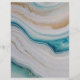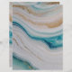 Dieses atemberaubende abstrakte Design erfasst die faszinierende Schönheit des Agates mit einer Drehung an der Küste. Die aquamarinen, türkisfarbenen und weißen Bänder spiegeln die komplizierten Muster in den wertvollen Opalen wider, während sie gleichzeitig den ruhigen Fluss der Meeresströmungen hervorrufen. Goldene Adern und gesprenkelte Falten im ganzen Stück sorgen für eine Touch von Opulenz, die an sonnengeküsste Ufer erinnert. Die glatten, hüpfenden Linien und Schichten erzeugen ein Gefühl von Tiefe und Bewegung, ähnlich wie die Bindung in natürlichen Agaten. Dieses Stück verbindet nahtlos den Reiz von Edelsteinen mit der Ruhe eines Küstenblicks und ist somit ideal für alle, die sowohl geologische Wunder als auch Küstenästhetik in moderner, abstrakter Form schätzen.
