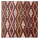 Ein Retro-Kunstmuster der 50er Jahre mit geometrischen Hohldiamanten und Sternen im Stil der Atomzeit. Die farbenfrohen Farbtöne sind Orange, Brennoten, Braun, Maron, Mahagoni, Ocker und Rosa.