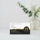 Cartes de visite de l'agence de l'emploi classique avec des éléments de conception en or simulés imprimés sur le devant, le texte et la mise en page, vous pouvez facilement personnaliser, avec la moitié de la couleur arrière - plan que vous pouvez customiser. Conçu pour toute entreprise qui travaille dans l'emploi, le placement ou le temps de travail.