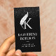 Notar Public & Loan Signing Agent Feather Monogram Initial Logo Black Glitzer Business Card.
