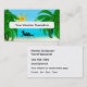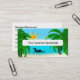 Travel Agent oder Travel Specialist Visitenkarten in einem tropischen Design mit Palmen, Strand, Sonne, und einer Frau, die auf ihrem Handy auf einem Liegestuhl für Spaß unterhalten. Ein zweiseitiges Design, das Sie online für einen Agent der Reisebranche, eine Agentur-Website oder eine Reise-Website anpassen können.