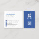Cette simple conception de carte de visite d'agent immobilier a une colonne bleue sur la droite contenant le logo et le nom de votre société en haut et votre code QR en bas. Votre nom, titre et détails apparaissent à gauche sur un arrière - plan blanc. Carte d'identité simple et minimaliste, parfaite pour presque n'importe quel type d'entreprise.