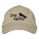 Dieser bestickte Hut hat eine schwarz springende Shetland Sheepdog Silhouette über das Wort "Agility", mit "Hund" auf der anderen Seite. Fantastischer Sheltie Hut für jeden, der mit ihrer Herdenrasse experimentiert.