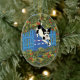 Ein weißer und schwarzer Hund nimmt ein Agility springen vor dem hintergrund eines Weihnachtswreath