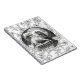A vintage black and white graphic of Jesus Christ as the Lamb of God with a background of black and white lilies.