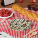 Ägyptische Hieroglyphen und Gottheiten auf Papyrus Pappteller