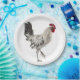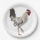 Auf dieser coolen Papierplatte befindet sich ein Foto eines ägyptischen Fayoumis-Roosters auf weißem Grund. Fotografie erstellt von der preisgekrönten Fotografin Maria Jeffs. Weitere Informationen zu ihrer Arbeit unter www.mariajeffsart.com