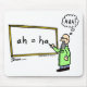 Die Vollfarbenversion von Dawn K. Williams' humorvoller "Aha!"-Cartoon eines Wissenschaftlers auf seinem Whiteboard. Als er mit der Formulierung seiner Gleichung "ah = ha" fertig wurde, denkt er mit Erleichterung: "AHA!"