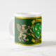 Weck mit der Jumbo-Tasse über voll von heißem Kaffee, Tee oder schokoladenbrauner Schokolade! Der irische Schild ist in einem goldenen Blattkranz und Greifen auf beiden Seiten! Erin geht Bragh!