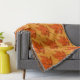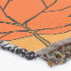 stilisierte Abbildung eines Ahornblattes, gekennzeichnet durch seine lebhafte orangefarbene Farbe. Das Blatt ist mit einer ausgeprägten Kontur dargestellt und weist eine klassische Ahornblattform mit mehreren spitzen Hallen und gezackten Kanten auf. Die Adern des Blattes sind umrissen und sichtbar, was dem Design eine Textur verleiht. Ein kurzer, brauner Stiel verbindet das Blatt mit dem, was sein Zweig zu sein scheint, und ergänzt die Illustration durch eine einfache, aber auffällige Ästhetik. Das Gesamtdesign hat eine flache, grafische Qualität, die die fette Farbe und Form des Blattes betont.