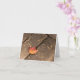 Ein Ahornblatt aus Single auf verwitterten Holzplatten steht für die Herbstsaison. Orangefarbene und rote Blätter und braune, verwitterte Bretter zeigen die gedämpften Farben der Saison. Teilen Sie Ihre Liebe von Fall und Erntedank mit dieser leeren Grußkarte. Das minimalistische Foto ist auch als Plakat und als Postkarten erhältlich, die sich hervorragend für personalisierte Einladungen zum Erntedank eignen.