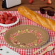 Machen Sie Erntedank mit Tellern aus Papier leicht! Die Herbstmaple-Blätter sind in Aquarelltönen gehalten, Beeren und Eichen. Diese Hintergrundfarbe kann geändert werden.