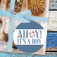 Ahoy It a Boy Blue Typografy Runder Aufkleber