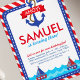 Ahoy ! vole sur le dessus pour une fête d'anniversaire nautique. Ancres à l'écart, naviguons pour célébrer la fête nautique de votre petit marin avec nos invitations d'anniversaire nautique. Les invitations à l'anniversaire de la voile sont accompagnées d'un voilier moderne et d'une ancre sur des rayures rouges et bleues. Tous à bord du voilier pour un plaisir d'anniversaire balnéaire. Notre modèle à thème nautique est parfait pour vos invitations d'anniversaire ahoy, des invitations de fête de plage, la fête d'anniversaire de piscine d'été.