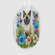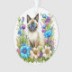 Ornement de Noël. Beau chat siamois aux yeux bleus dans une parcelle de fleurs bleues et violettes est de l'art dans un style aquarelle.