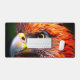 Ce tapis de bureau a un oiseau gonflable dessus.
