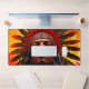 Ce tapis de bureau a un Indien Ai dessus.