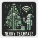 AI Robot mit Tech Christmas Tree - Merry Techmas Quadratischer Aufkleber