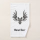 Aigle à deux têtes, symbole de puissance des empereurs byzantins. Couleur arrière - plan personnalisée. Texte personnalisé sur chaque serviette.
