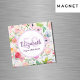 Un élégant aimant à thème d'été et de jardin intemporel dans un style bohème romantique, boho pour un 50ème anniversaire avec pastels doux et fleurs aquarellées en rose, pêche et feuilles verts. Un arrière - plan blanc clair. Modèle pour le nom, l'âge et la date. Le nom est écrit en violet avec un script de style manuscrit. Préférez les faveurs de fête ou comme un rappel de date pour vos invités.