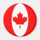 Le drapeau du Canada a été soigneusement fixé à la forme circulaire de cet aimant. Une façon décorative de promouvoir la culture canadienne.