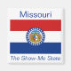 Une image authentique et de qualité du drapeau du Missouri placé entre le nom de l'Etat et le surnom sur un arrière - plan couleur drapeau. Carte dérivée des images à l'adresse nationalatlas.gov.