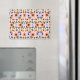 A vibrant floral pattern features orange and purple flowers with green leaves on a white background. The back is plain gray, suggesting the item's reverse side.