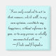Grace ta journée avec les paroles immortelles de Jane Austen, une véritable amoureuse de la parole écrite. Cette conception entièrement personnalisable comprend la citation de son roman Régence "Fierté et Préjugés", "Je ne suis résolu à agir de cette manière, qui, à mon avis, constituera mon bonheur, sans référence à vous, ou à toute personne si totalement déconnectée de moi."
