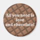 Texte : "Tout ce dont vous avez besoin, c'est de l'amour et du chocolat !" sur un arrière - plan de bar à chocolat
