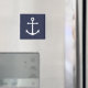 Aimant nautique minimaliste moderne avec ancre blanche sur arrière - plan bleu marine. Parfait comme décor de maison de plage, cadeau de ménage, cadeau pour lui et plus.