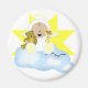 Un petit ange sucré est assis sur un nuage avec du peluche et du bétail. Ajoutez un nom/une date à personnaliser.