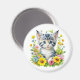 L'art de l'Ai représente un chaton chaton tabby gris mignon assis dans un bouquet de jolies fleurs jaunes, roses et bleues.